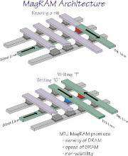 MRAM באדיבות רון מרטנס MRAM - Magnetoresistive(or Magnetic).Random.Access.Memory הוא זיכרון (RAM) המשתמש בסִחְרוּר אלקטרוניים כדי לשמור מידע. נאמר כי הוא "הזיכרון האידיאלי"- עם שילוב פוטנציאלי של צפיפות ה-DRAM עם מהירות ה-SRAM וחוסר הנדיפות של הזיכרון במצב מוצק והדיסק הקשיח, כל זאת עם צריכת כוח נמוכה מאוד. MRAM יכול לעמוד מול קרינה גבוהה ולתפקד בתנאי טמפרטורה קיצוניים. סביר כי נמצא את ה-MRAM הראשוניים באפליקציות הדורשות תכונות אלו. MRAM דורש הרבה פחות רענון זיכרון מאשר DRAM, מה שמוביל לצריכת כוח טובה יותר. הוא גם מהיר יותר מ-SRAM (זיכרון ה-cache של ה-CPU). כך, MRAM יכול לאפשר הרבה יותר אחסון במכשירים ניידים, עם חיי סוללה ארוכים יותר. יבוא יום ו-MRAM יוצר בצפיפויות גבוהות, ואולי יחליף את הדיסק הקשיח במחשב - המחשב יהיה מהיר וניתן יהיה להדליק אותו ברגע. כיצד זה עובד MRAM פועל עם בניית שדות מגנטיים זעירים בצמתי רשת של מסילות כוח ננוסקופיות. כאשר הזרם מנסה לעבור דרך מסילת כוח המתנגד לקוטביות של אחד מהביטים של השדות המגנטיים, הזרם שלו נבלם וערך הבית השמור בשדה מתגלה על ידי הזרם המוחלש הזה.