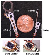 ה-Slider הינו הכנף הקטן התומך בראש הקורא/כותב מעל שטח פני הדיסק. הקטנה של 30% בגודל הסליידר (Femto slider) מגדיל ב-25% את ביצועי העמידות לזעזוע, לעומת הטכנולוגיה הנהוגה לפני כן (Pico slider).