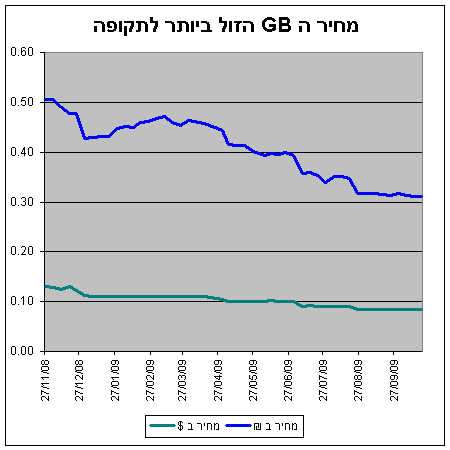 שער ערך ה GB 22/10/2009 השוואת כדאיות רכישת דיסק קשיח מסוג SATA לפי מחיר לכל 1GB