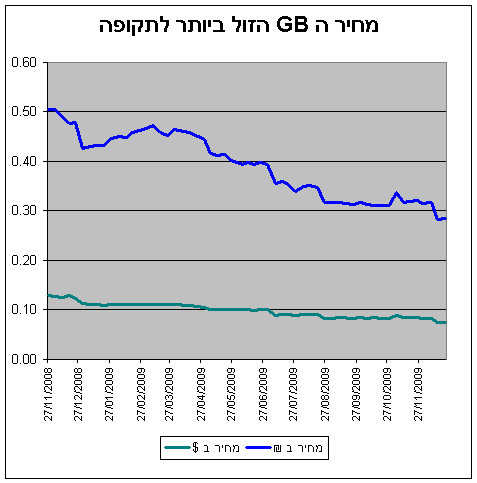 שער ערך ה GB 24/12/2009 השוואת כדאיות רכישת דיסק קשיח מסוג SATA לפי מחיר לכל 1GB