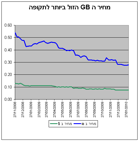 שער ערך ה GB 04/02/2010 השוואת כדאיות רכישת דיסק קשיח מסוג SATA לפי מחיר לכל 1GB