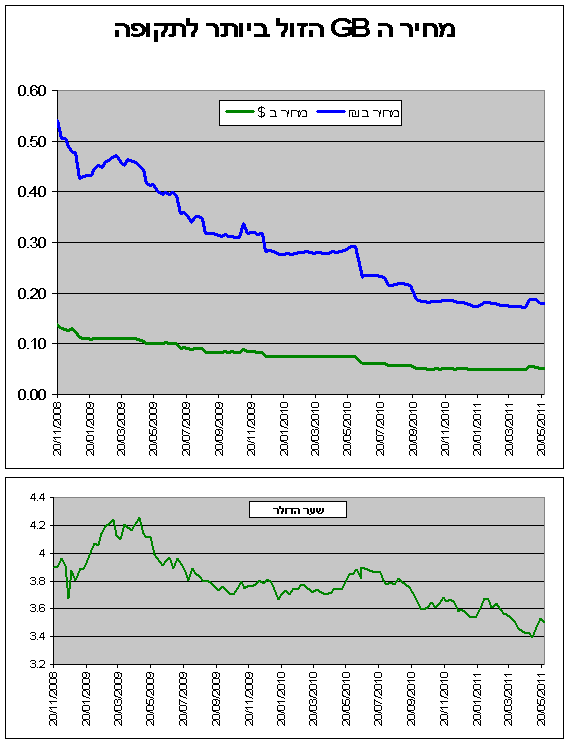 שער ערך ה GB 25/05/2011 השוואת כדאיות רכישת דיסק קשיח מסוג SATA לפי מחיר לכל 1GB
