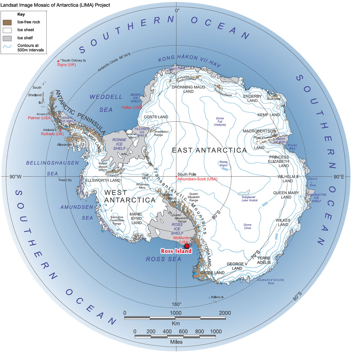 כגון הטלסקופ של הקוטב הדרומי, הצריף של Shackleton, מושבות